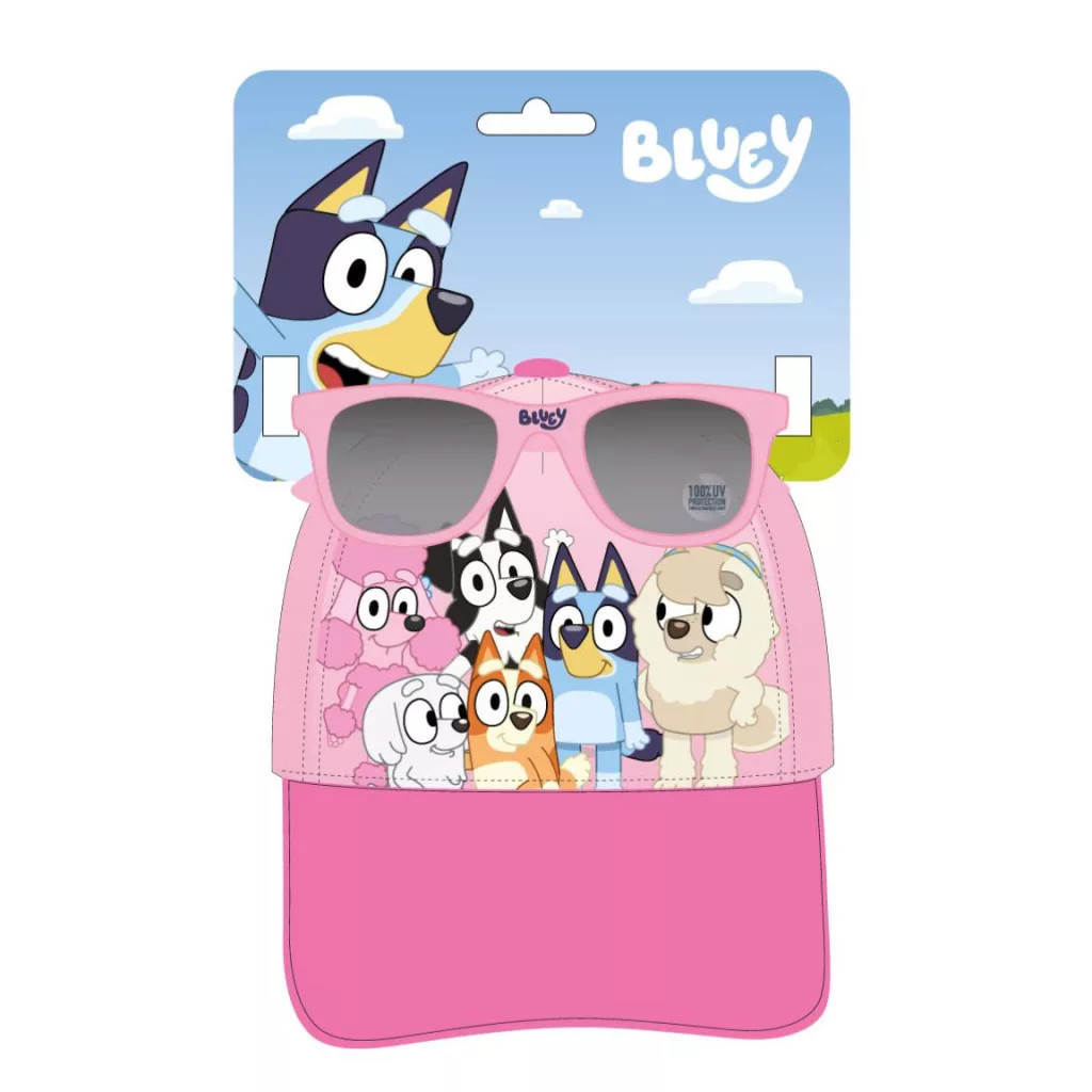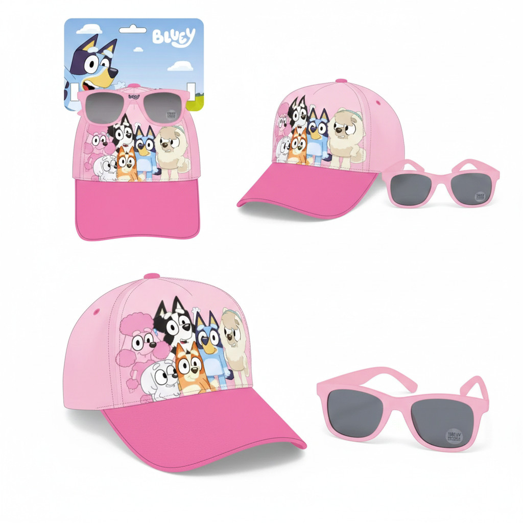 A Bluey Pink Team napszemüveg és baseball sapka szett vidám, praktikus kiegészítő minden kis Bluey rajongó számára. A szett úgy lett összeállítva, hogy egyszerre nyújtson kényelmet, védelmet és játékos megjelenést a mindennapi szabadtéri kalandok során.
