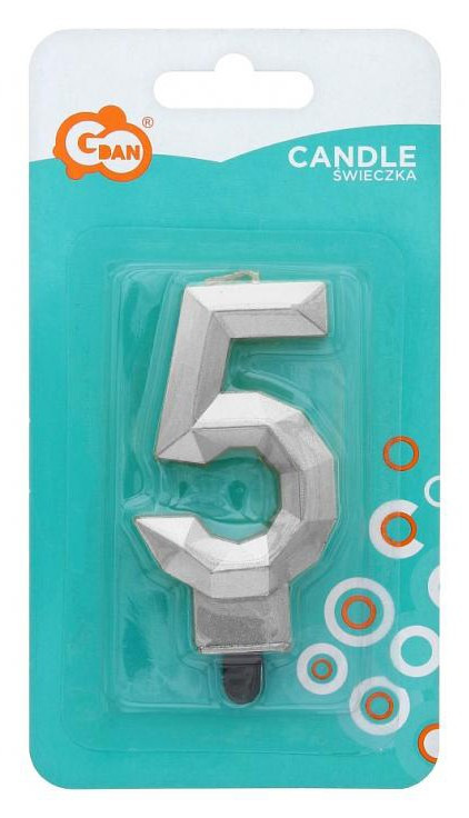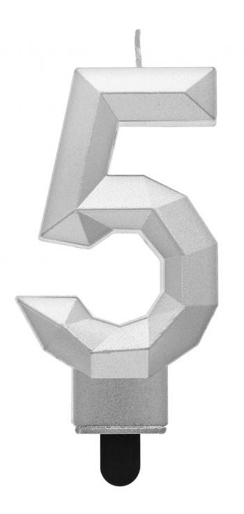 Ezüst számgyertya, tortagyertya 5-ös