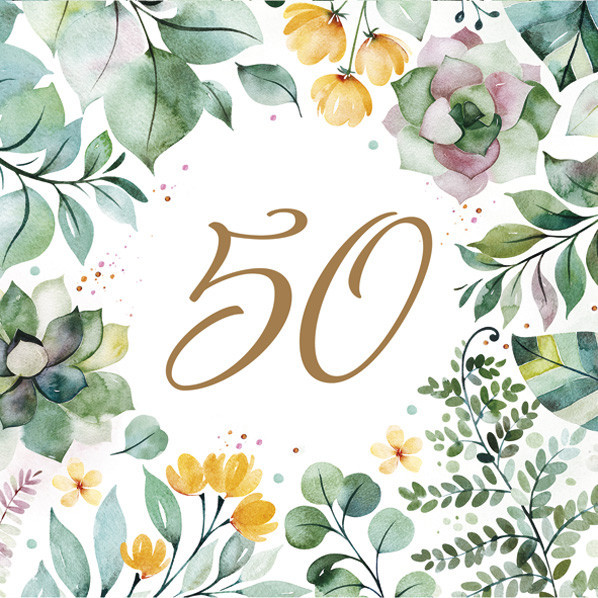 Happy Birthday 50 Floral Frame szalvéta 20 db-os 33x33 cm