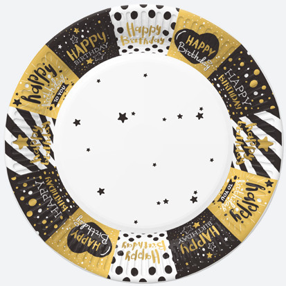 Happy Birthday Golden papírtányér 8 db-os 18 cm